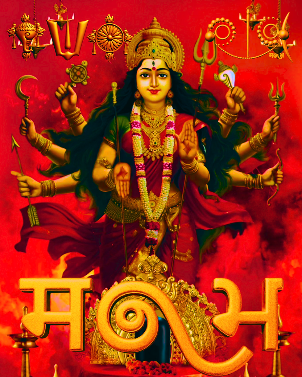 Nārāyaṇī Stutiḥ is offered in devotion to Śrī Aṣṭabhujī Vanadurgāmbikā.